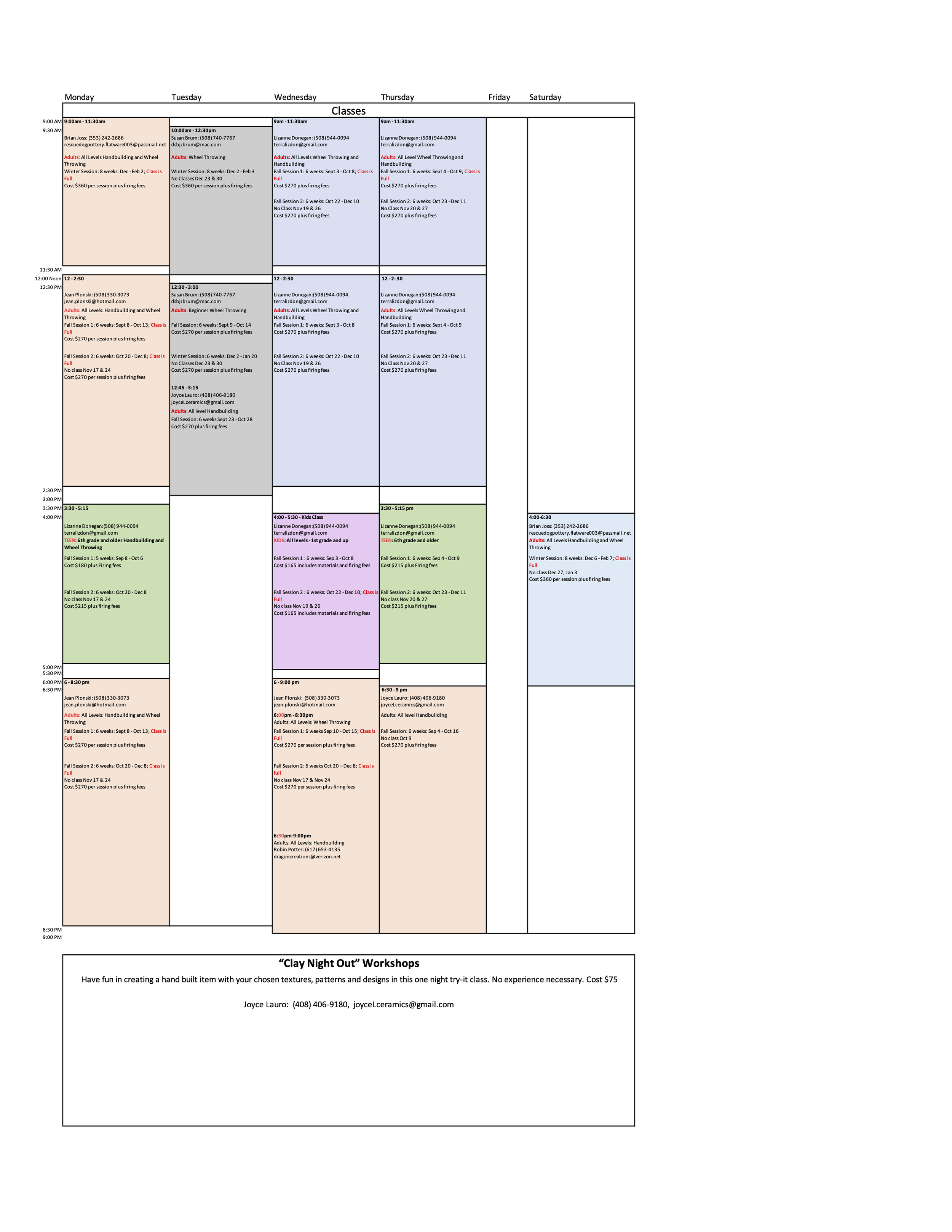 Joyce: (408) 406-9180, joyceLceramics@gmail.com