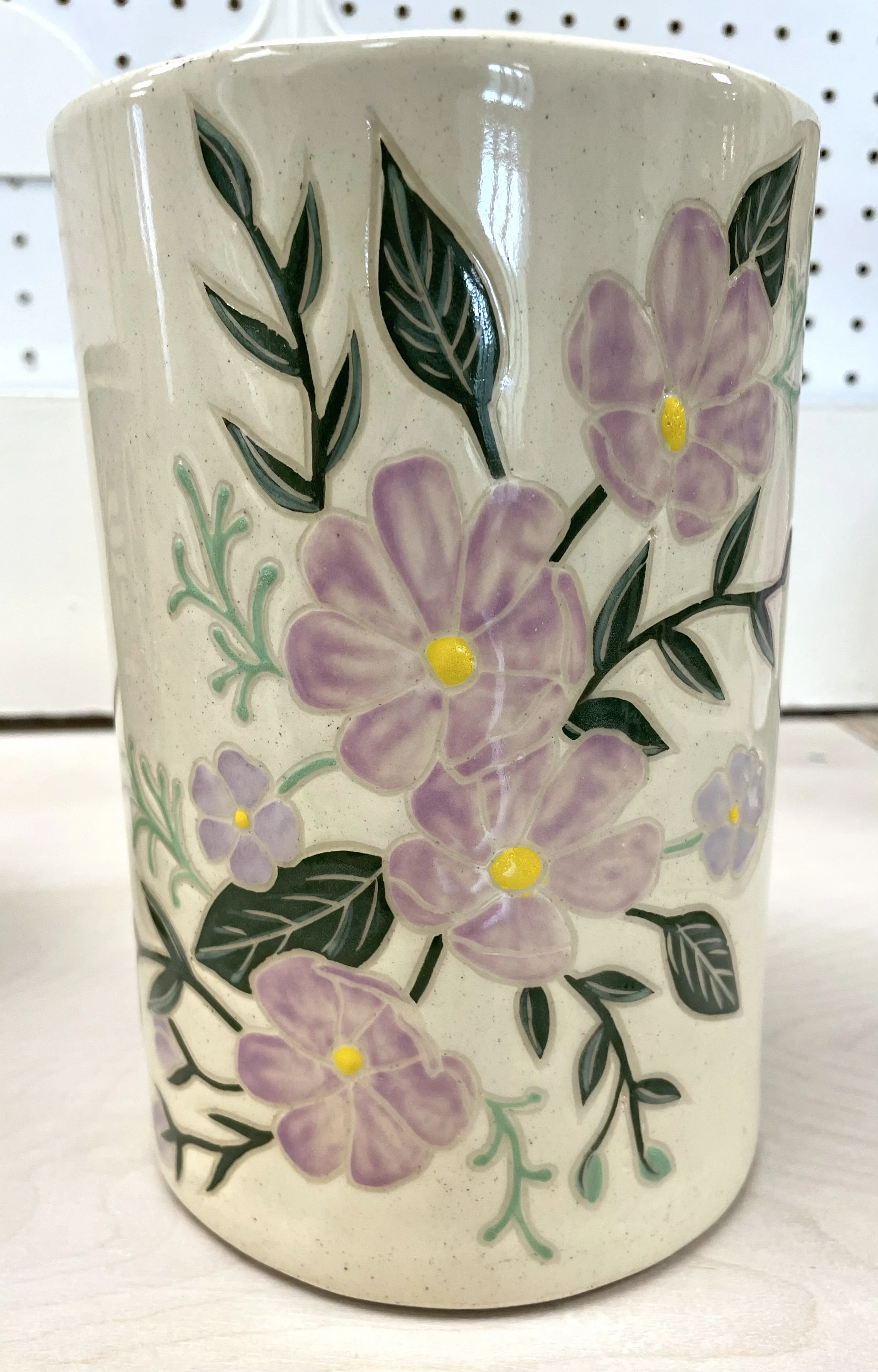 I feature my process and pieces on my instagram page, @MadApplePottery. Check out the video showing how I created this abstract floral Sgraffito design on a vase.